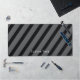 Enhance your desk with an unique, diagonal stripes, gray and black desk mat. The options to remove or add text, change the font and size, along with the background color are available.