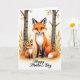 Designed with two fox-like woodland animals as the main focus, the artwork shows an adult with a smooth orange coat, white chest and tail tip, and dark markings on the legs and ear tips, sitting close to a smaller youngster. The pair angle their faces toward each other with a tender, trusting look that suggests closeness and care ❤️. Both have large golden eyes that catch the light, giving them a gentle, attentive expression as if sharing a quiet moment together. They rest in a simple forest clearing with pale, slim tree trunks on either side and scattered yellow leaves that hint at early autumn. Soft straw-toned grasses and light earthy shading sit near their paws, keeping the scene calm and cozy 🌼. The background stays mostly white, leaving plenty of open space so the warm oranges and muted browns stand out. Along the bottom edge, the phrase “Happy Mother’s Day” appears centered in a dark, easy-to-read style. Small golden leaves dot the branches above the foxes against the bright white backdrop.