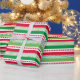 This adorable wrapping paper with red and green polka dot stripes would look fabulous on your gifts! It's festive and fun. Get enough to wrap all your gifts.