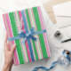 Stripes and Abstract Planets, Rose Pink and Green Wrapping Paper