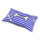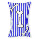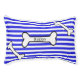 Fun pet pillow done in a blue and white striped pattern, with cartoon graphics of black and white bones. Personalize the black text, on the center bone, with your pet's name. Great gift idea for any dog owner.