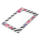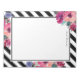 A personalized note pad with style and flair includes a black and white diagonally striped pattern with scattered bouquets of colorful watercolor florals. The vibrant flowers are in shades of pink, fuchsia and purple. Edit the sample name shown with your name or other desired text.