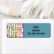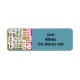 These return address labels have a mid-century modern design of rectangles on top of colored stripes.