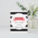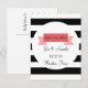 This "save the date" postcard features a banner design on a black and white striped background. Customize with your names, details and a special greeting on the back.