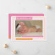 Share your happy news with this modern girls birth announcement from PiPo Press. Colorful stripes of orange and pink tell everyone how excited you are to welcome your baby girl! Personalize with your favorite photo of the new loved one and details of her birth and this announcement is ready to go.