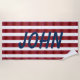 Series, of Abstract planks, stacked to form, wide stripes, in fading shades of, red, pink, blue, and black, against white, background-with your choice of Monogram, in Navy-blue.