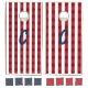Series, of Abstract planks, stacked to form, wide stripes, in fading shades of, red, pink, blue, and black, against white, background-with your choice of Monogram, in Navy-blue.