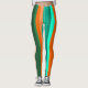 These leggings have a Bauhaus design of stripes in shades of orange and teal.