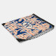 This drawstring bag features your monogram initial and name on a collage of palm trees and navy blue, coral and baby blue stripes. Create for yourself or give as a gift.