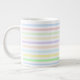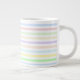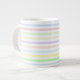 Lighten up with a pleasing thin stripes pastel color combo on a jumbo ceramic mug.
