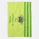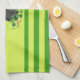 A Kitchen towel suitable or St. Patrick's Day, this item features a lime green background with "Happy St. Patrick's Day" written in green font. There is a pot of gold underneath with green stripes at the bottom. Order yours today!