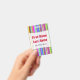 This badge design features an eyecatching pattern of stripes (or lines) of various colors. It also features a customizable name in red colored text within a light colored area. There is also a customizable message under the name that could show information such as a job title, or a profession, or a business/company name. [~Z0000176]