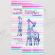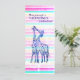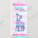 Original, personalized, pink, blue stripes,Valentine's party invitation with kissing giraffes art drawing Matte 10.2 cm x 23.5 cm, Standard white envelopes included