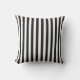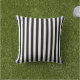 This outdoor throw pillow is shown in a cute black and white stripes print.