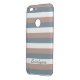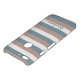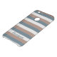 Do you like simple phone cases with text you can personalize? This phone case has a pattern featuring mocha brown, teal and white stripes. The text can be changed and customized to fit your needs.