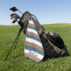Do you like golf towels with minimalist designs? This golf towel has a pattern of mocha brown, teal and white stripes. The name can be changed and personalized!