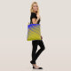 Combination of blue, yellow and green colors. Wave stripes pattern. Daily use tote-bag with all-over print.