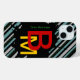 A simple and elegant protection for your phone - stripes design in black and blue (customizable) colors, a black paint splash and name initials