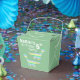 Green and blue stripy cartoon dinosaurs on cute Kid's customized Birthday party favor boxes.
