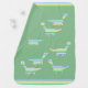 Green and blue stripy cartoon dinosaurs on cute green baby blanket.