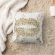 Strokes Gold Glitter Kiss Lips Makeup White Marble Throw Pillow