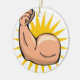 Lightweight, smooth, pure white ornament with nice sheen. Perfect size to be seen from across the room ... and to attract closer inspection! Price was great for ordering enough for the whole family! Clear, bold black design just as requested. Matches the order exactly. Just so nice!