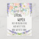 The inspirational 'Here's to strong women. may we know them. may we be them. may we raise them.' quote enclosed in a beautiful watercolor blush pink peonies and blue, purple delphinium and sweet pea floral design. Send a little love and encouragement to any woman or girl in your life. Celebrate International Women's Day.
