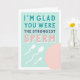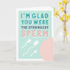 Keep swimming! Our cheeky birthday card features three swimming sperm and an egg, with "I'm glad you were the strongest sperm." Customize the inside message or leave as is; default inside message reads "happy birthday."