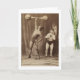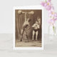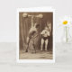 This funny card features a Victorian era photograph of a circus strongman lifting weights as his rather comical assistant looks on. Blank inside.
