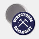 Structural Geologist - dark blue magnet with white collegiate style lettering and crossed rock hammers graphic.