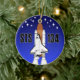 Commemorate the last launch of Space Shuttle Endeavour with this ornament. Features the shuttle on a dark blue background graced by 14 stars representing the 14 astronauts lost during the program's 30 year mission.