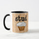 Funny stud muffin features a brown vanilla cupcake muffin with white frosting on top, a clever play on words saying for the buff guy who likes to workout, boyfriend whose a metrosexual or just general funny men with a sense of humor on valentines day. All Designs Copyright © 2012 www.CuteComfy.com