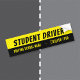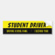 A black and yellow bumper sticker to warn other vehicles . "Student Driver" is written in bold letters . Add your driving school' s name and phone number in the second line .