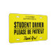 Student Driver Please be patient driving school License Plate. Custom driving lessons car sign. Make your own auto warning sign with bold text. Available in aluminum and plastic. Handy caution signs for professional driving school instructor, teacher and new drivers. Add your own school name or website optionally. Bright yellow or any color. Including a thank you message optionally.