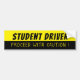 A yellow and black bumper sticker for driving school to warn other vehicles that there is a student driver at the wheel . The main text is written in bold black letters , and simply states "Student Driver" . The secondary text reads " Proceed with caution !" in thinner yellow letters . You can modify both of those texts if you wish .