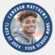 Modern, dark blue or custom color graduation photo sticker with custom name, school and year in a white font. You can change font and background colors, move and resize elements with the design tool.