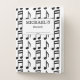 This pocket folder design features a grid of music notes. The front also features a personalized name, a personalized description, and a line where a school subject name could be written. It might be used by a student to store notes, papers, assignments, and other school work.