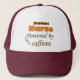 Een pet met oranje en bruine letters met de tekst Studerende verpleegkundige aangedreven door Cafeïne. Leuk voor iemand met het beroep van verplaagkundige. als plaatje een bliksem afgebeeld.