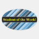 "Student of the Week!" + Blue and Grey Stripes Oval Sticker