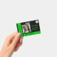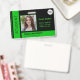Please note that the background color, fonts, and sizes of text can be changed. You can upload a QR code, or a bar code, or add any other info on the backside.