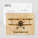 The front of this vintage postcard features an old Biplane airplane layered on top of an antique background color. Below it lies a customizable title, change the default text of "Congratulations!" to fit your unique needs. On the back, personalize it with the sender's name, address, and custom message or use ours. Great for family, friends, flight instructor, or co-workers to send to their student pilot. Remind them you are proud of them and help them celebrate their first milestone!
