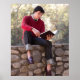 Student Reading Book and Sitting on Stone Wall Poster