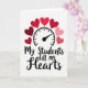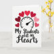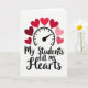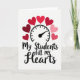 This greeting card shows a round meter like an old-style gauge, drawn with black lines, with one needle pointing up near the top to show “full.” Across the top of the circle, seven hearts form a curved row, shifting from deep red on the left to lighter pink on the right. The hearts look smooth and sweet, giving the design a caring, thankful feel. Under the meter, the message “My Students fill my Hearts” is written in black, flowing script that feels personal and sincere. The text sits centered near the bottom, easy to read against the white background. With the simple white space around everything, the hearts and the meter stand out right away and keep the focus on appreciation. It’s a thoughtful Valentine’s Day message for a teacher who wants to show students how much they mean ❤️