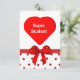 Pretty Valentine's Day card to students from the teacher. Done in red and white, with whimsical polka dots and graphics of a pretty red bow, on the bottom of the card. A big red candy heart, at the top, has custom white text reading Super Student. The back side has red text with a Valentine greeting. Personalize the text, on the front and back, to suit your class needs.