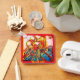 The key chain is made of metal and really sturdy. The flower design is really cheerful. The logo and colors are clear and crisp!