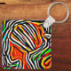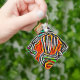 The key chain is made of metal and really sturdy. The flower design is really cheerful. The logo and colors are clear and crisp!