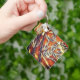 The key chain is made of metal and really sturdy. The flower design is really cheerful. The logo and colors are clear and crisp!