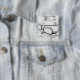 Studio shot of eyeglasses on eye chart pinback button