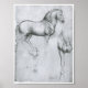 This study of horses is two drawings done by Leonardo Da Vinci in 1490. One is a side view of a beautiful horse and the other a close up of the chest and front legs.
