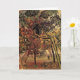 Study of Pine Trees by Vincent van Gogh is a vintage fine art post impressionism landscape nature painting. A forest with pine trees during the autumn season with beautiful colorful leaves on the ground. A man is walking in the distance.